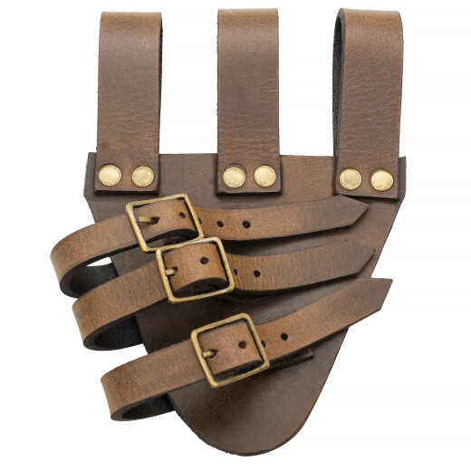 Zajisti své drahocenné čepeli bezpečné a stylové nošení! Tento třípřezkový kožený závěs je perfektní volbou pro všechny majitele rapírů, kordů a lehkých mečů, kteří dbají na historickou přesnost a kvalitu. Díky nastavitelným popruhům padne jako ulitý. Pořiď si ho a doplň svůj historický či fantasy outfit!
