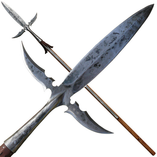 Upozornění: Originál této tyčové zbraně dosahoval větší délky, než je max. délka přepravy (max. cca 198cm). Pokud si jí objednáte včetně ratiště, dodáme Vám jí v rozloženém stavu: dřevěná tyč o délce cca 198cm a kovová horní část. Po obdržení si repliku budete muset sami zkompletovat. Potřebný spojovací materiál, kování ratiště i kožené třásně jsou obsaženy v dodávce.