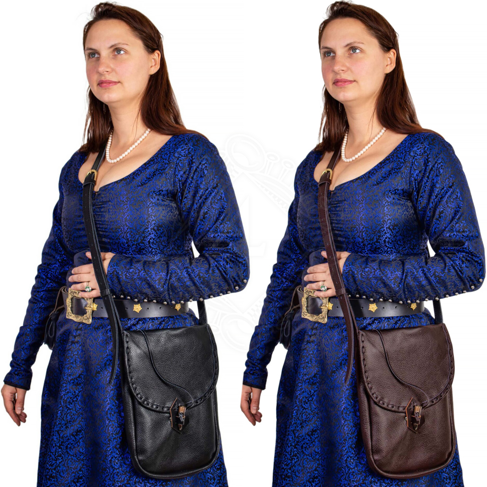 Ve středověku a renesanci bylo oblečení typicky bez kapes. Muži i ženy proto byli závislí na různých typech váčků, mošen a brašen pro přenášení osobních věcí. Zatímco menší váčky na mince (měšce) se nosily u pasu na opasku, větší brašny přes rameno, podobné této, byly oblíbené zejména u poutníků, poslů, obchodníků a kohokoli, kdo cestoval na delší vzdálenost. Říkalo se jim také poutnické tašky (angl. "pilgrim satchel" nebo "scrip") a sloužily k přenášení jídla, dokumentů, křesadla a dalších nezbytností pro přežití na cestách.