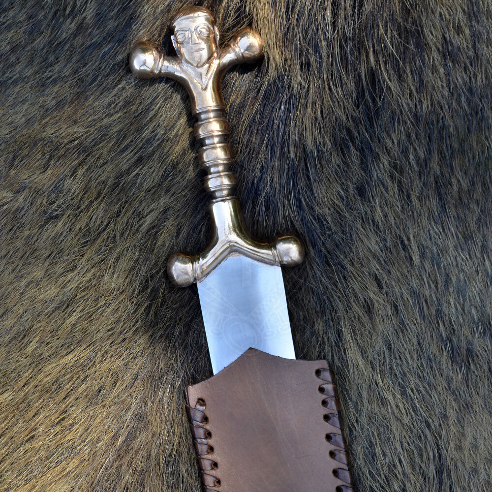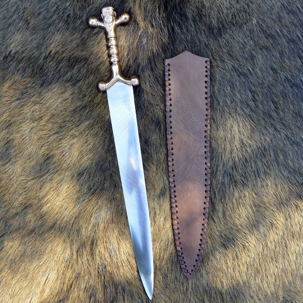 Keltská dýka s bronzovou rukojetí a koženou pochvou
