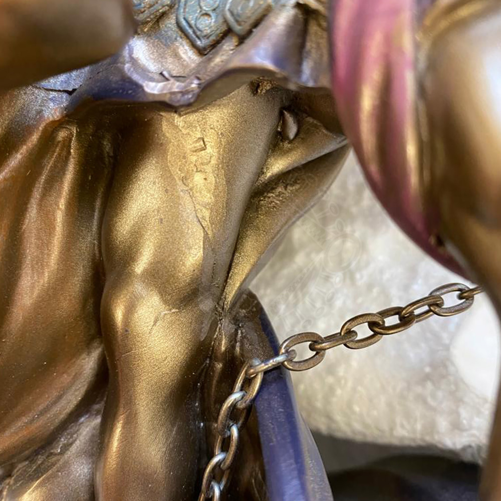 Ačkoliv soška vypadá, jako by byla z bronzu, zhotovena je ze synetické pryskyřice. Je to odolný materiál, proto si můžete Archanděl Michael, bronzovou sošku vystavit doma i v zahradě.