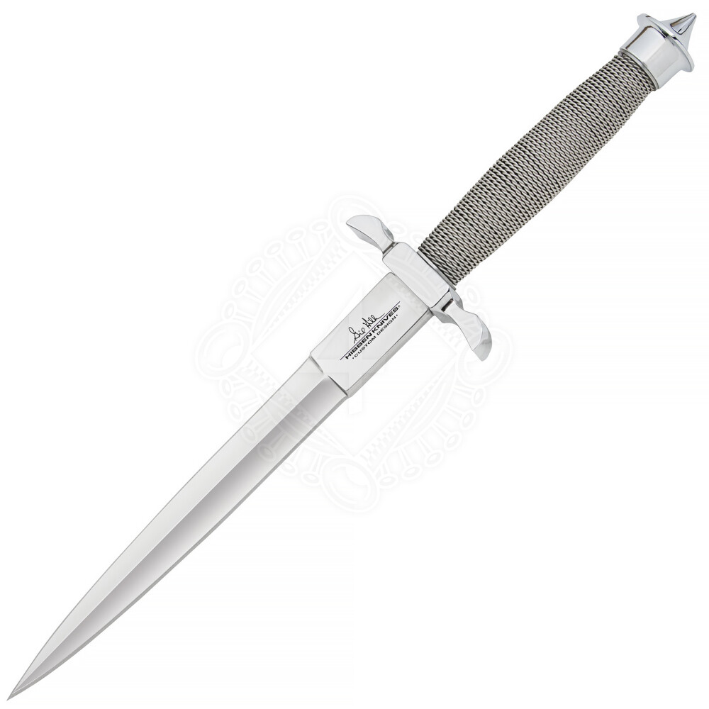 Gil Hibben, proslulý svým jedinečným designem nožů a čepelí, navrhl tento nekonvenční nůž speciálně pro United Cutlery v roce 1990. Tato poutavá dýka, měřící cca 32cm na celkovou délku, má cca 19cm dlouhou, zrcadlově leštěnou čepel z nerezové oceli 420. Do čepele je vyryto logo Gil Hibben. Rukojeť ovinutá stříbrným drátem bezpečně padne do ruky. V ceně je pouzdro přesně vyrobené na míru z pravé kůže. Více informací k produktu ...