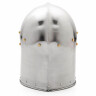Uvnitř má helma nastavitelnou polstrovanou vložku z bavlněného plátna a kožené řemínky, které ji po zavázání pod bradou drží pevně na hlavě. Tato ocelová rytířská helma se nosí přes zbrojní čepku nebo kuklu, bude působivým doplňkem výzbroje pro dobové rekonstrukce, renesanční historické akce, ale i pro , LARP nebo jiné kostýmové aktivity.