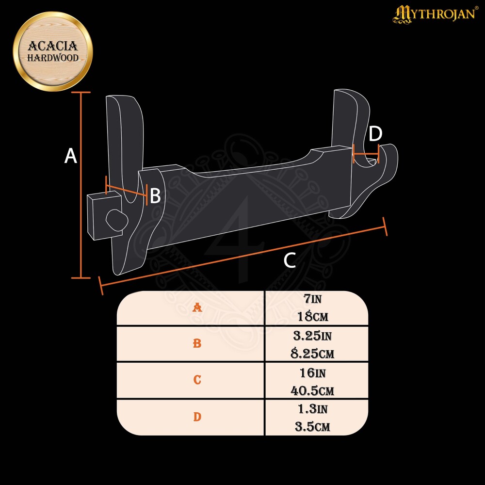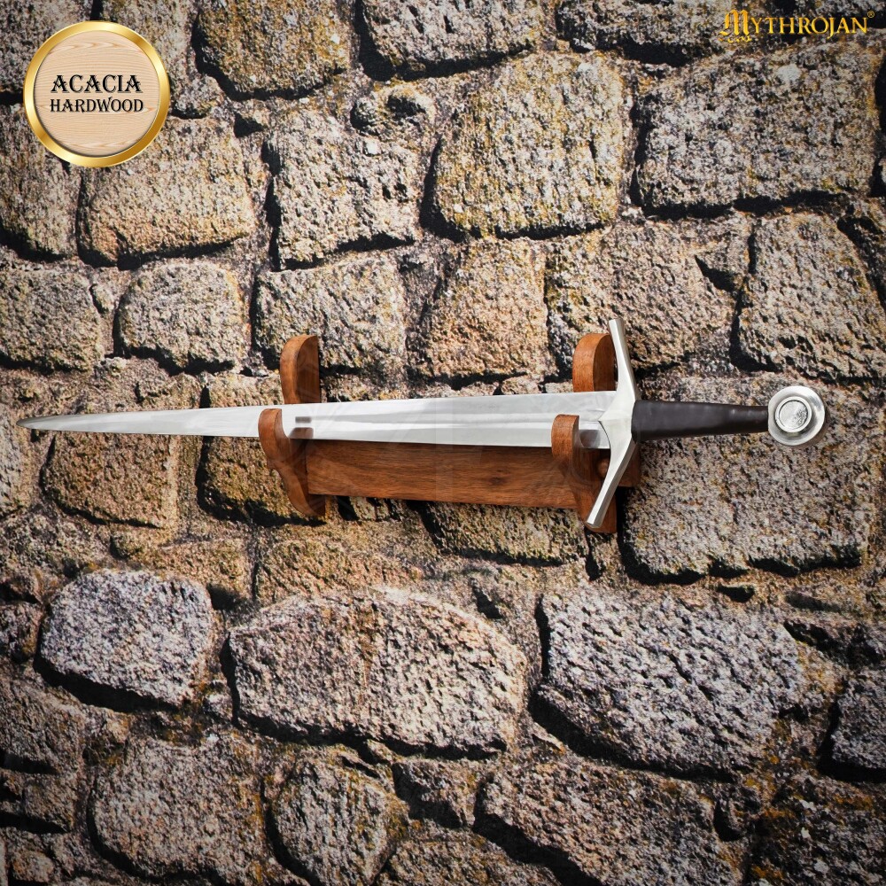 Ať už chceš ozdobit svou pracovnu, obývací pokoj, knihovnu nebo klubovnu, tento držák je ideální volbou. Je navržen tak, aby bezpečně a stabilně udržel většinu typů jednoručních i dlouhých mečů, seker či jiných středověkých zbraní. Jeho minimalistický, ale robustní design nechá vyniknout krásu samotné zbraně. Je to perfektní dárek pro každého sběratele, nadšence do historického šermu (HEMA), re-enactora nebo milovníka fantasy, který chce svou sbírku zbraní prezentovat na úrovni.