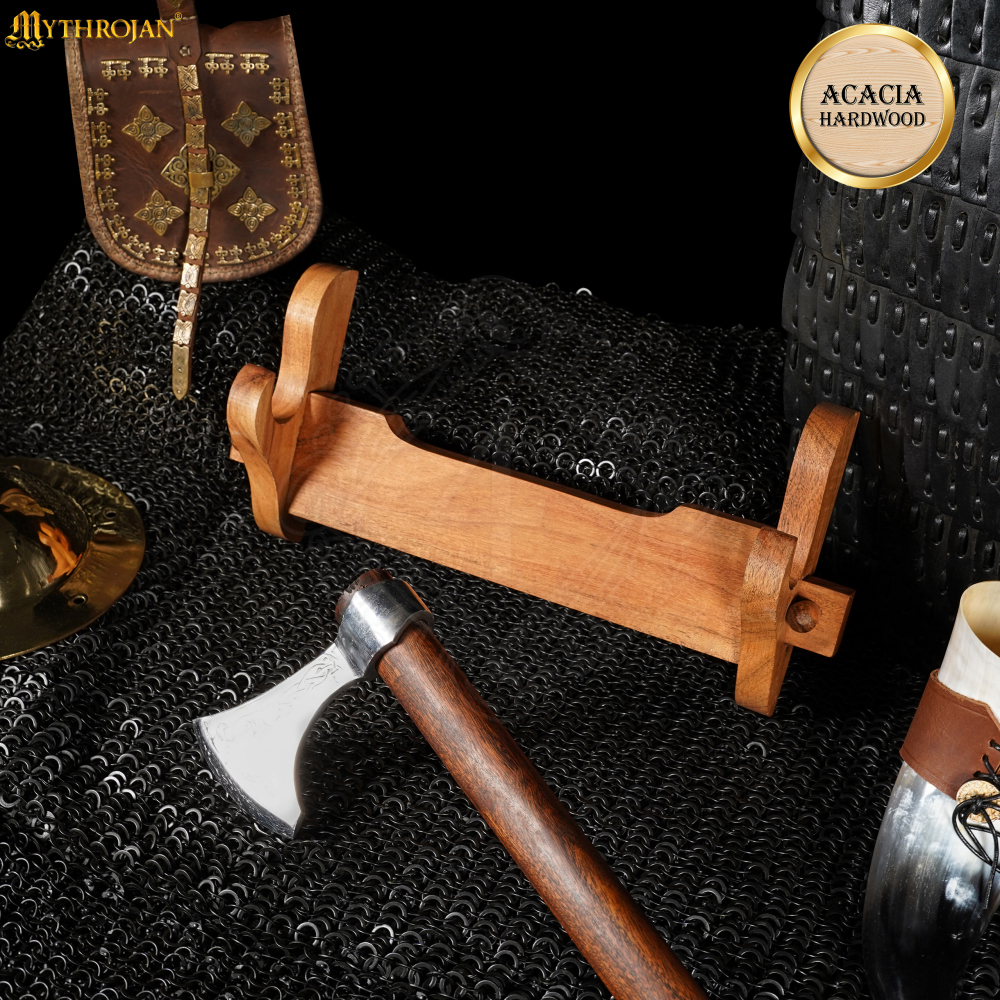 Tvůj meč, sekera nebo jiná chladná zbraň si zaslouží víc než jen být schovaná ve skříni či opřená v koutě. Vystav svůj nejcennější kousek s hrdostí a elegancí pomocí tohoto stylového nástěnného držáku. Je vyroben z masivního akáciového dřeva, jehož krásná přírodní kresba dodá každému interiéru nádech rustikálního luxusu a historické atmosféry. Tento držák promění tvou zbraň v ústřední bod místnosti a ukáže všem tvou vášeň pro historii a řemeslo. Více informací k produktu ...