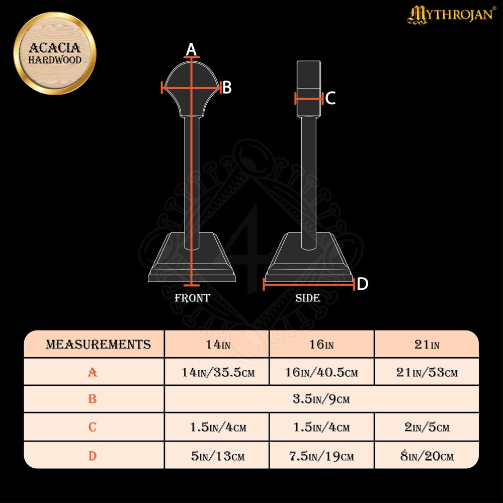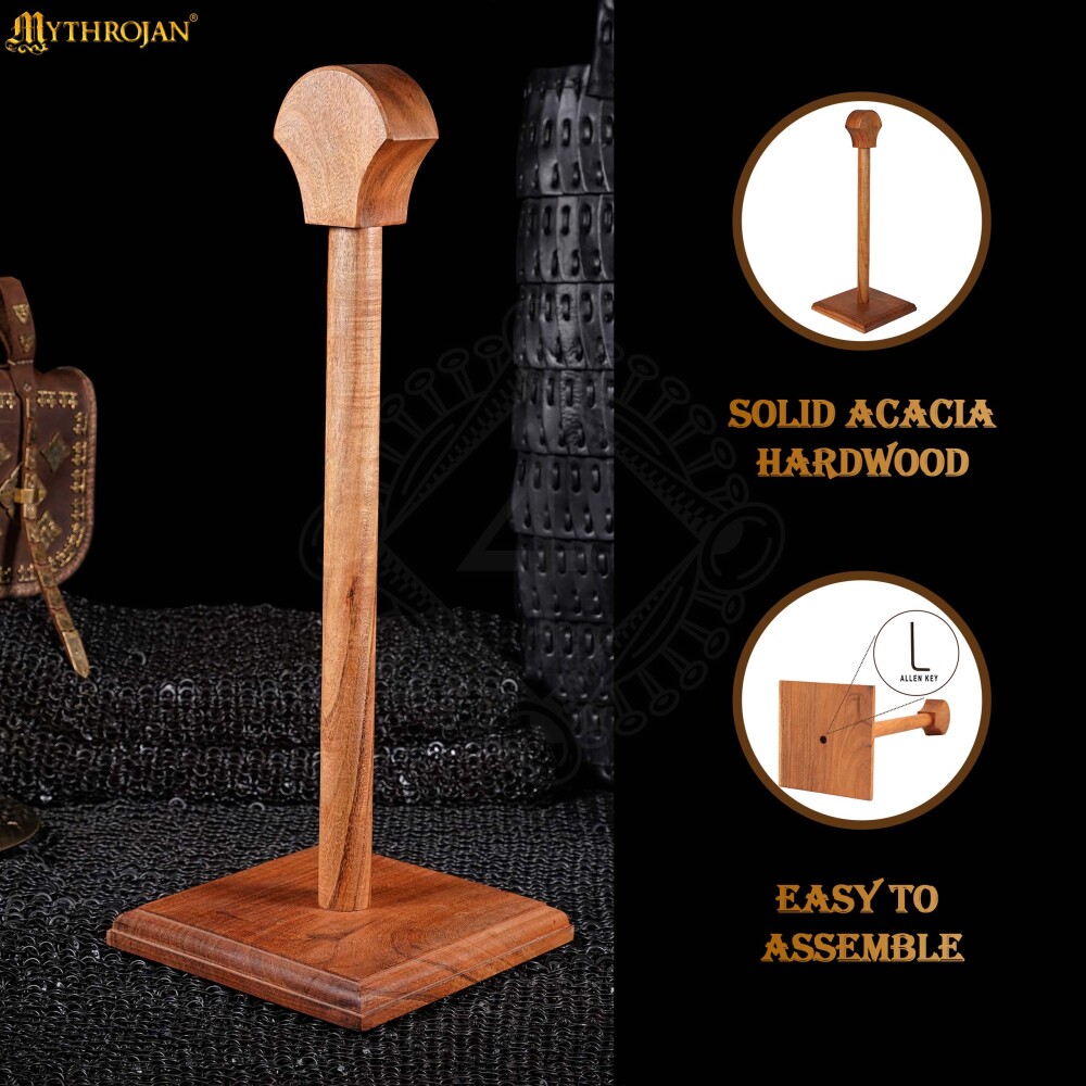 Každá přilba, ať už je to cenný sběratelský kousek nebo věrný společník z bitev, si zaslouží svůj trůn. Tento elegantní dřevěný stojan na helmu je navržen tak, aby tvé přilbě poskytl důstojnou prezentaci a proměnil ji v exponát hodný muzea. Je vyroben z prvotřídního masivního akáciového dřeva, které je známé svou tvrdostí a nádhernou kresbou. Nabízíme jej ve dvou povrchových úpravách – přírodní a černé – a ve třech různých výškách, aby sis mohl vybrat tu nejlepší variantu přesně pro tvou helmu. Díky robustní základně a jednoduché montáži je tento stojan ideální volbou pro každého sběratele, re-enactora i milovníka historie. Více informací k produktu ...
