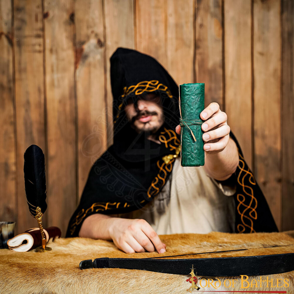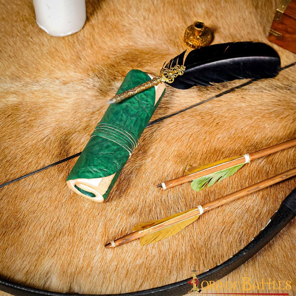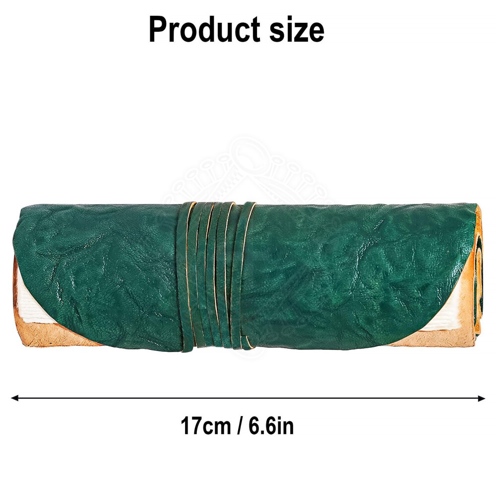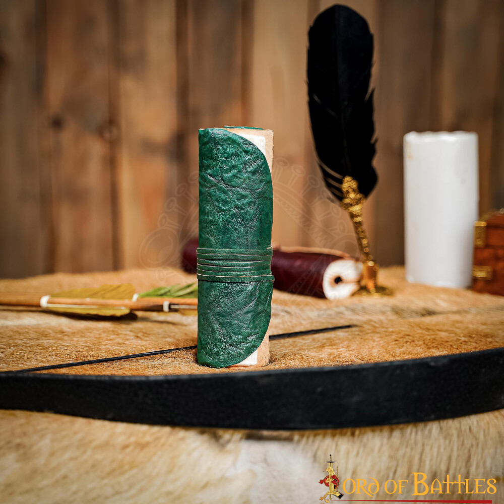 Tento zápisník je ručně vyrobený z hovězí kůže získávané etickým způsobem, je srolován do tvaru 17cm dlouhého svitku. Obsahuje cca 50 listů (100 stran) ručně vyráběného papíru. Zápisní svinutý do role se převazuje koženou šňůrkou.