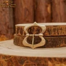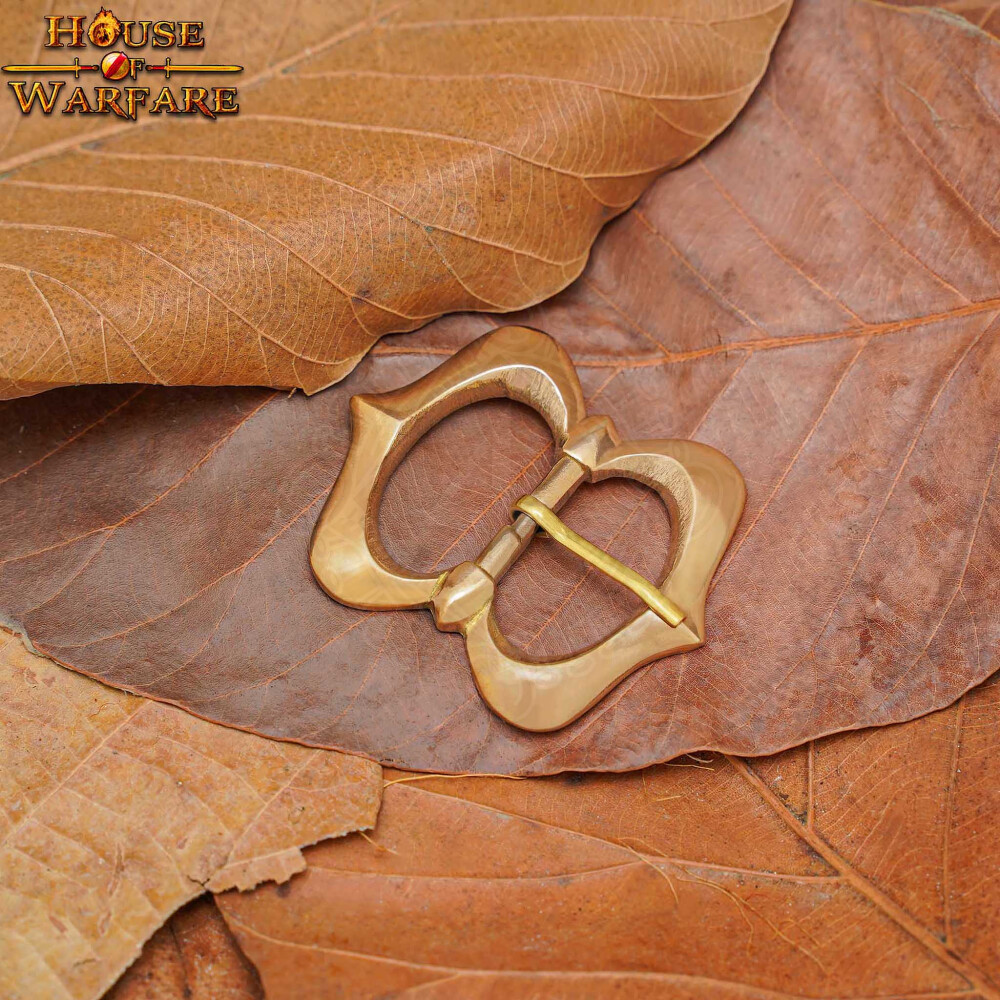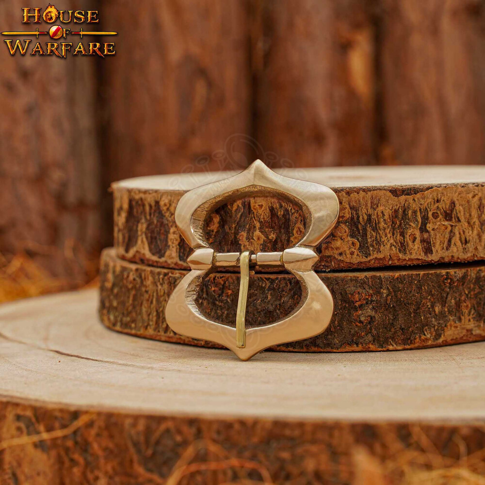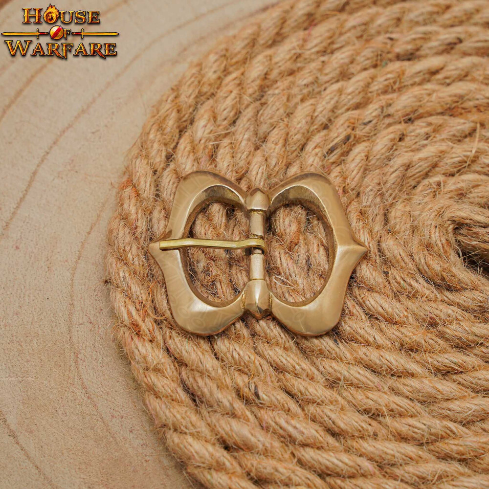 • Odolná mosaz: Pevná konstrukce z masivní mosazi zaručuje, že přezka bez problémů unese i váhu meče nebo dýky zavěšené na opasku.
