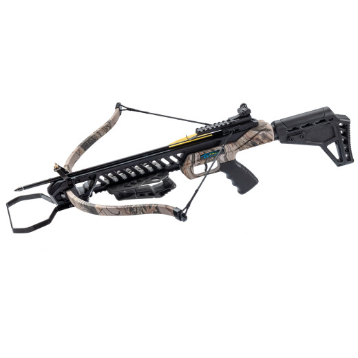 Další důležitou výhodou je přídavná 20mm Picatinny lišta na spodní straně kuše. Můžete na ni namontovat laser, světlo nebo dvojnožku. Přední madlo je také namontováno na této liště a je tedy nastavitelné. Pažba je také nastavitelná, takže délka kuše se může pohybovat mezi 78 a 82cm. Díky tomu je dobře nastavitelná pro jakoukoli polohu při střelbě. Pro bezpečnou a přesnou střelbu je model MK-XB27GODC vybaven automatickou pojistkou a nastavitelným mířidlem. Toto mířidlo můžete sejmout, načež můžete upevnit zaměřovač s červeným bodem. Vzhledem k vysoké síle tahu 175 LBS je zdarma přibalena napínací šňůra MK-CS. Tato kuše je dodávána také s tětivou a 2 šípy.