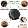 Celková kapacita rohu je cca. 400-500ml. Používejte jej prosím pro podávání nápojů s max. 20% obsahem alkoholu. Nemyjte v myčce na nádobí a nepoužívejte pro zahřívané nápoje. Před prvním použitím omyjte pod tekoucí vlažnou vodou. Pro delší životnost ošetřete po každém použití včelím voskem. Vezměte prosím na vědomí, že se jedná o přírodní produkt, který se časem rozkládá, a proto může po nějaké době používání dojít k prasknutí.