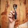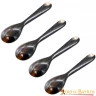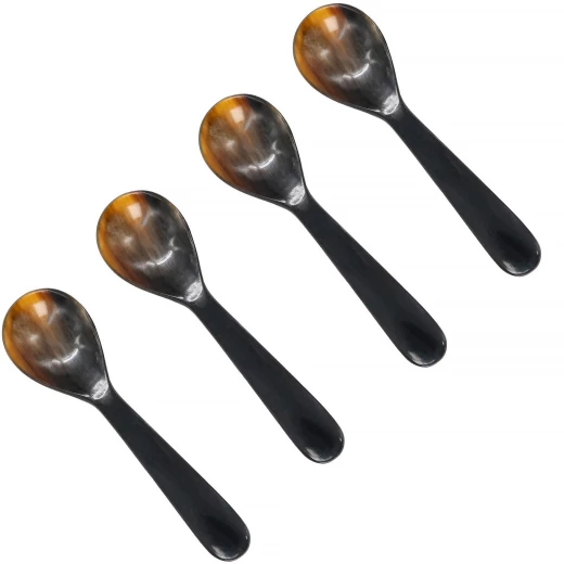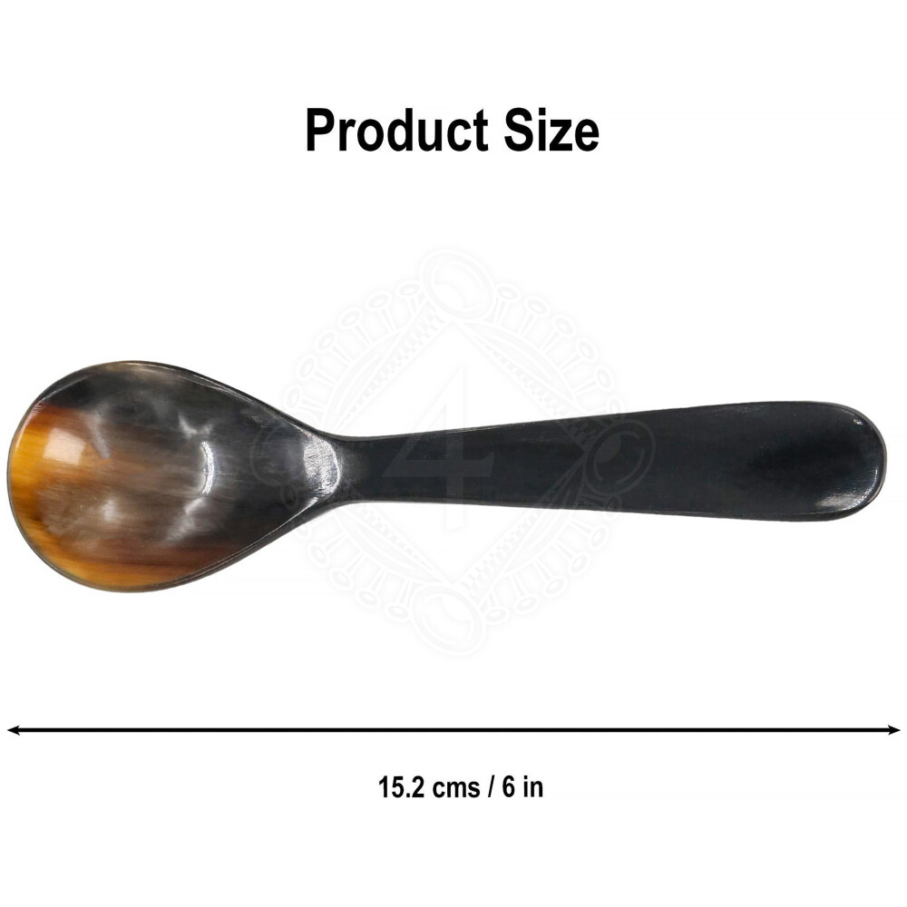 Tato lžíce je zhotovena z jednoho kusu pečlivě vybrané a zpracované volské rohoviny. Její povrch je ručně broušený a leštěný do hladkého lesku, který je příjemný na dotek. Barevnost lžíce je převážně tmavá, téměř černá, s přirozeným žilkováním a občasnými světlejšími, jantarově hnědými skvrnami, které se soustředí zejména v její prohlubni. Tento unikátní vzor činí z každé lžíce jedinečný kus. Rukojeť je plochá a ergonomicky tvarovaná pro pohodlný úchop.