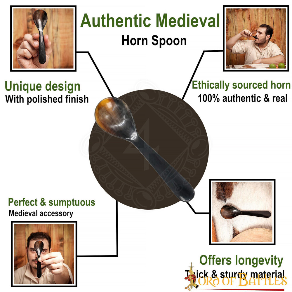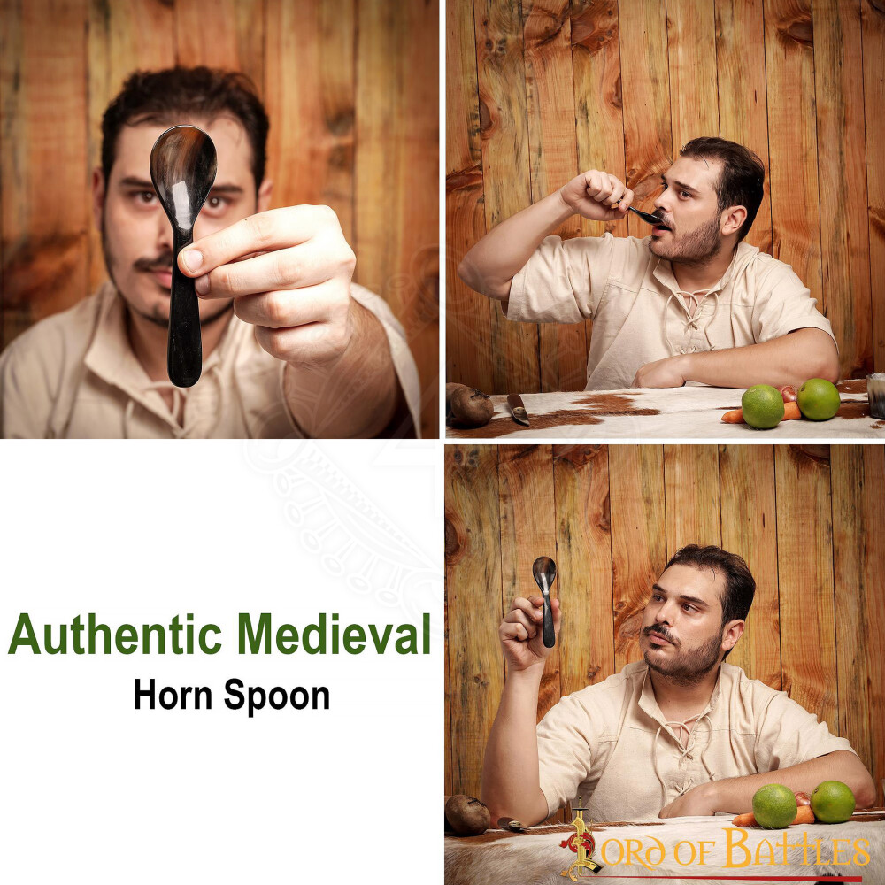 Ať už jsi nadšenec do reenactmentu, LARPu, nebo jen milovník rustikálního stylu, tato lžíce je pro tebe ideální. Skvěle se hodí k pojídání dušených pokrmů, kaší, polévek či dezertů na středověkých trzích, hostinách nebo při táboření. Díky přírodnímu materiálu je lehká a zároveň odolná. V historii byly lžíce z rohoviny běžnou součástí osobní výbavy. Na rozdíl od drahých kovových příborů byly cenově dostupné, lehké a nekorodovaly. Byly to univerzální nástroje pro stravování, které si jejich majitelé často nosili stále u sebe.