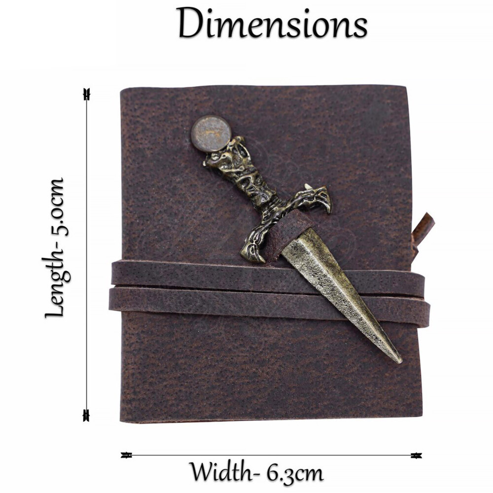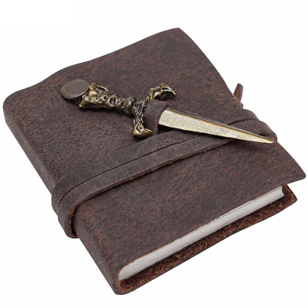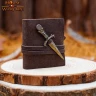 Kožený sešit 5x6cm s dýkou a koženým řemínkem