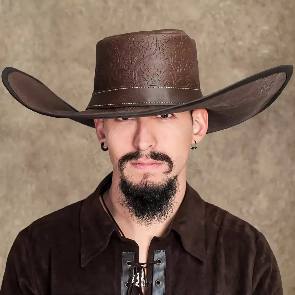 Kožený klobouk Alatriste, široká krempa, reliéfní ražba - Outlet