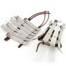 Tento typ vikinských lamelových chráničů předloktí spadá cca do 7. století. Byl zhotoven podle archeologických nálezů ve Valsgärde. Byl hojně rozšířen, ale záleželo také na movitosti válečníka. Předloktí svého nositele chránily proti úderům mečů a dalších zbraní. Vikinské chrániče předloktí jsou vyrobeny z kovaných železných plátů o síle 2mm. Železné pláty jsou spojeny pomocí kožených řemenů. Více informací k produktu ...