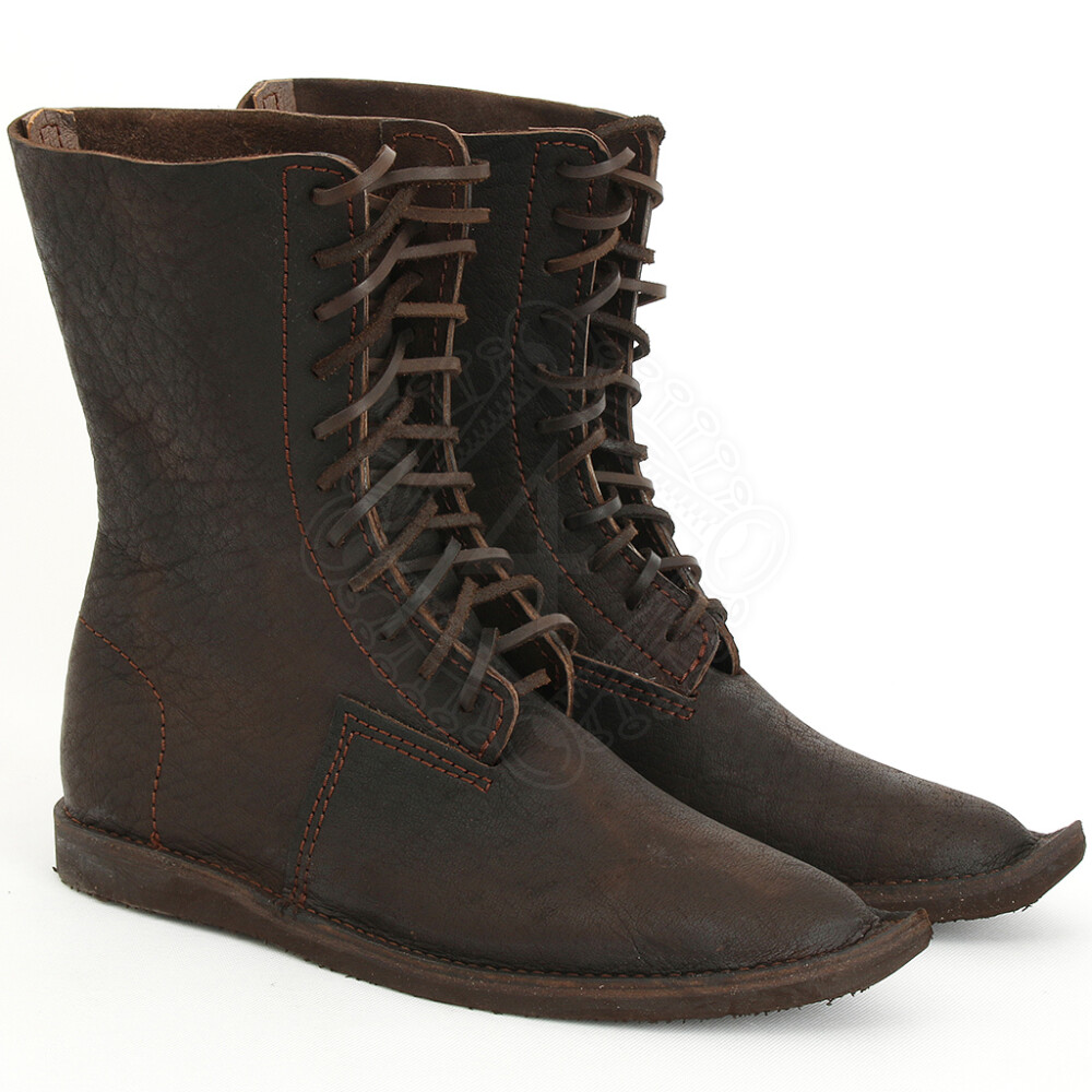 Polovysoké boty jsou mírně zašpičatělé a vepředu šněrované. Vyrobeny jsou z kůže o síle cca 2-3mm. Více informací k produktu ...