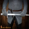 Vrať se v čase do éry normanských výbojů a prvních křížových výprav s těmito autentickými kroužkovými palčáky. Jsou navrženy tak, aby věrně kopírovaly vzhled a funkci raně středověké ochrany rukou a představují dokonalou rovnováhu mezi ochranou, pohyblivostí a pevným úchopem zbraně. Dlaň z pravé kůže ti zajistí, že ti meč či sekera nevyklouzne z ruky ani v té nejdivočejší bitevní vřavě, zatímco ocelové pletivo spolehlivě ochrání hřbet tvé ruky a prsty. Jedná se o ideální doplněk pro každého válečníka z 11. až 13. století. Více informací k produktu ...
