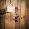 - Pomocí kožené šňůrky provlečené dírkami na obou koncích ji pevně, ale pohodlně utáhni.