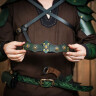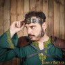 Dodej svému historickému kostýmu punc moci a urozenosti s touto ručně vyráběnou koženou čelenkou. Ať už ztvárňuješ hrdého vikinského jarla, středověkého šlechtice nebo neohroženého válečníka na LARPu, tento doplněk je tou správnou volbou. Čelenka je vyrobena z pevné a odolné pravé kůže o síle 2,6–2,8 mm, která je zároveň dostatečně pružná pro pohodlné nošení. Její design je okamžitě rozpoznatelný díky výrazné, do středu se rozšiřující siluetě, která je bohatě zdobena mosaznými a poniklovanými cvočky. Tyto kovové prvky dodávají čelence autentický a luxusní vzhled. Díky nastavitelnému koženému řemínku (šňůrce) si ji snadno přizpůsobíš přesně na svou hlavu. Více informací k produktu ...