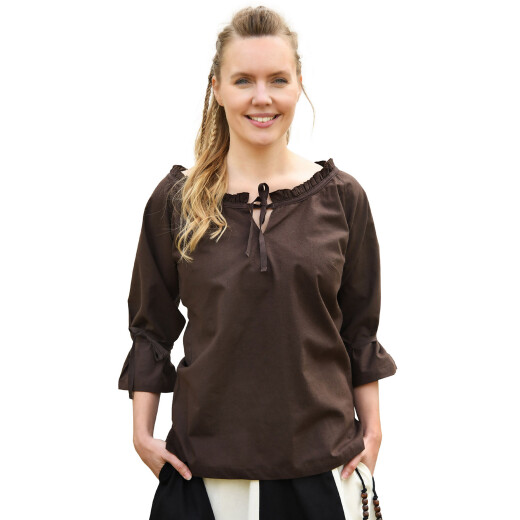 Středověká halenka Birga s 3/4 rukávem, hnědá