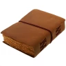 Přírodní lněný provázek omotaný kolem deníku. Patinovaná povrchová úprava kožených desek, stejně jako papír uvnitř zápisníku působí starožitným dojmem.