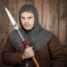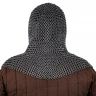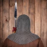 - Doplňková zbroj: Je ideální jako spodní vrstva pod helmu, například pod železný klobouk (kettle hat), normanskou přilbu nebo cassis. Perfektně chrání krk, šíji a ramena – místa, která samotná helma často nechává odkrytá.