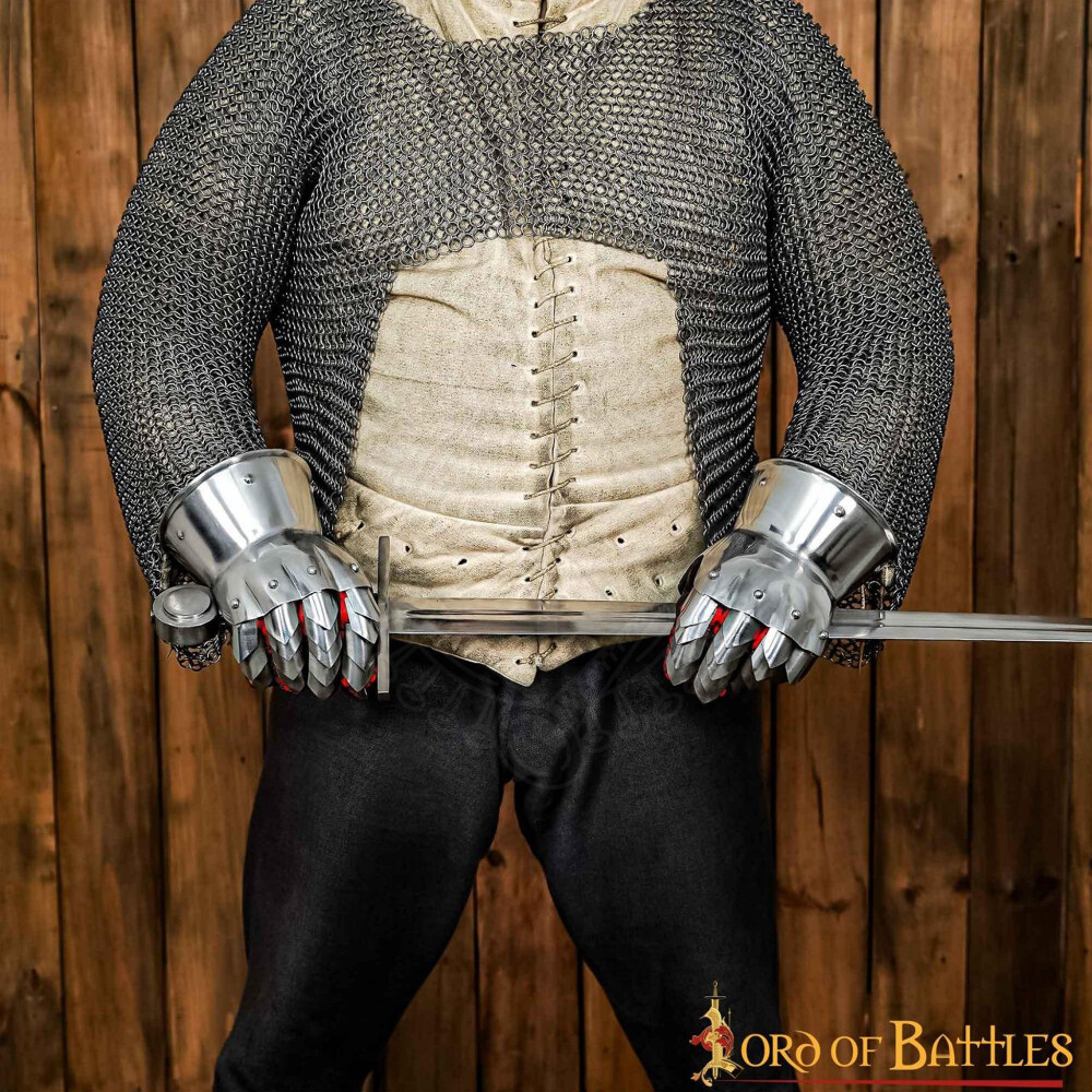 Fantasy plátové rukavice „Dračí jezdci“ | Červené podložení, 0,9 mm ocel