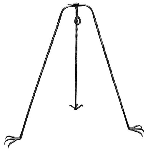 Zapomeň na improvizovaná a nestabilní řešení. Tato kovaná trojnožka představuje spolehlivý a bezpečný základ pro vaření na otevřeném ohni. Během okamžiku ji sestavíš nad ohništěm a jsi připraven. Na bytelný hák zavěs litinový kotlík a pusť se do poctivého guláše, vydatné polévky nebo jen ohřej vodu na kávu. Výšku kotlíku nad plameny můžeš jednoduše upravovat, což ti dává plnou kontrolu nad intenzitou varu. Po hostině trojnožku snadno složíš do kompaktního tvaru a pohodlně přeneseš.