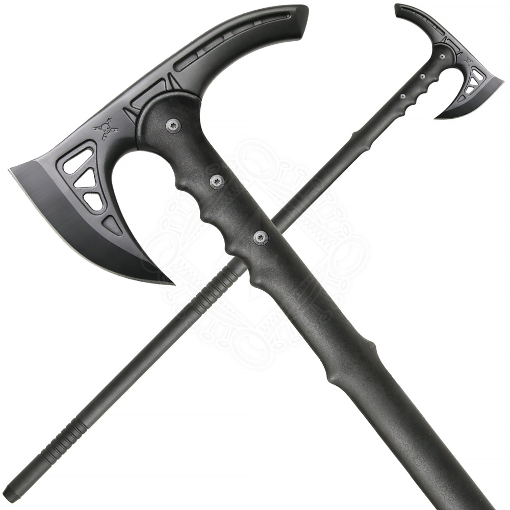 Základem této sekery je masivní hlava odlitá z nerezové oceli 2Cr13. Tato ocel byla zvolena pro svou vysokou odolnost proti korozi a schopnost udržet ostří i při hrubším zacházení. Hlava je k topůrku pevně fixována pomocí tří ocelových šroubů, což zajišťuje maximální stabilitu a bezpečnost při švihu. Topůrko samotné je vyrobeno z kompozitu vyztuženého 30% skelným vláknem (nylon), díky čemuž je prakticky nezničitelné, lehké a skvěle tlumí nárazy.