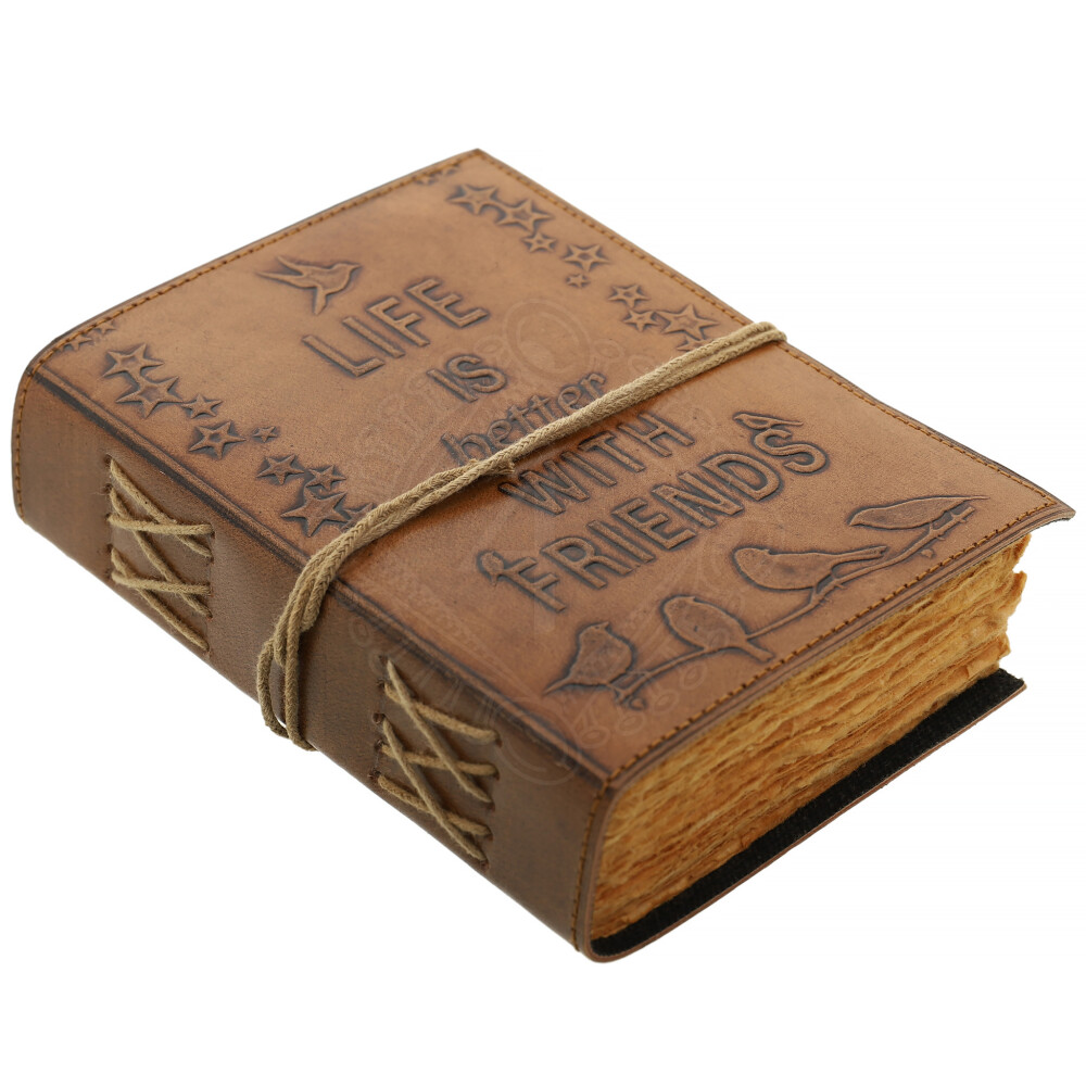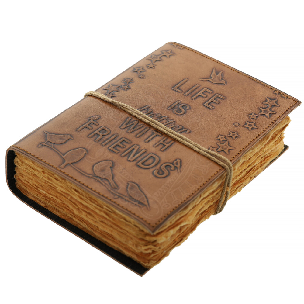 Ručně vyráběný kožený zápisník LIFE IS better WITH FRIENDS