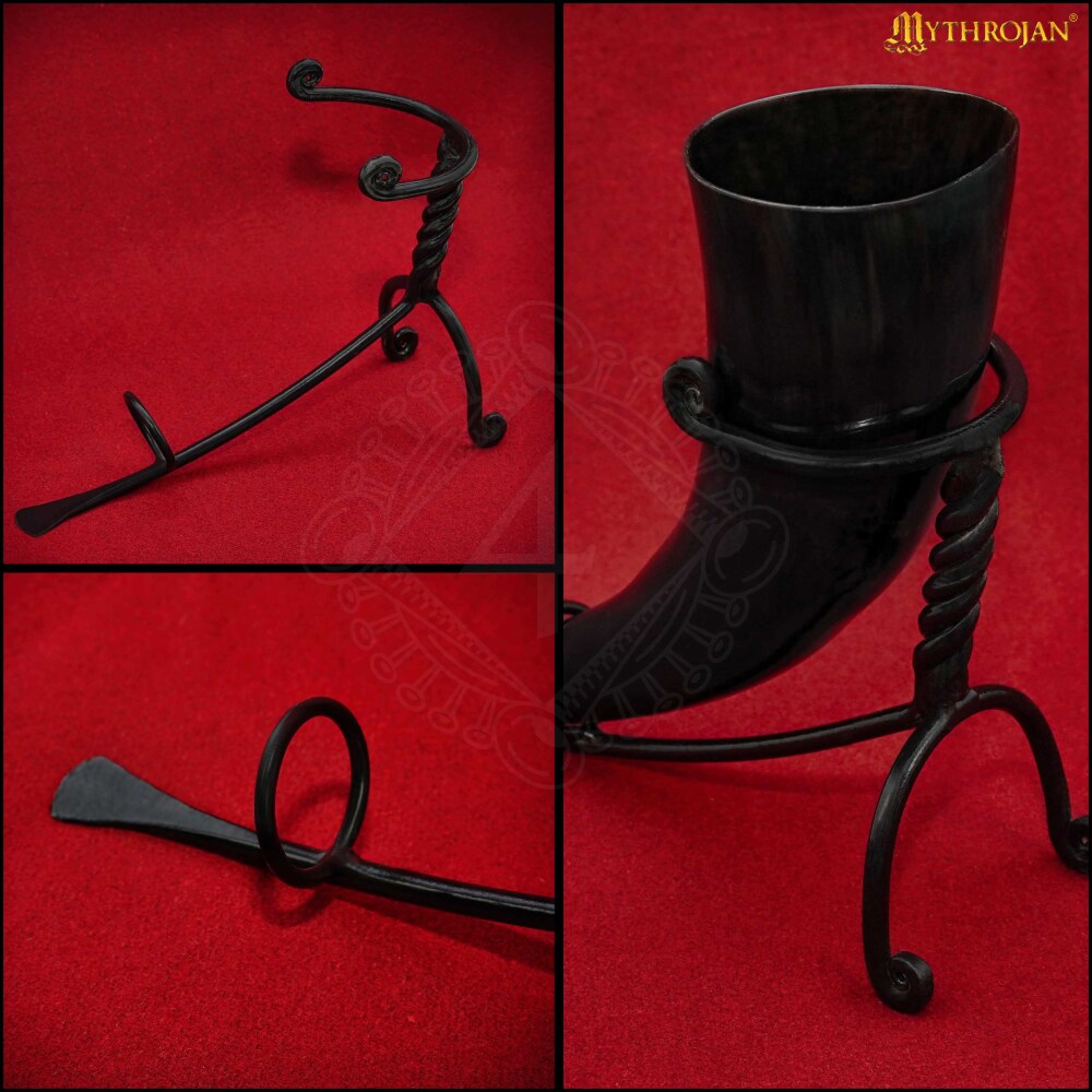 Zapomeň na nepohodlí, když si na hostině nemáš kam odložit svůj roh. Stojan je navržen tak, aby vyhovoval většině běžných velikostí picích rohů, typicky v rozmezí objemu od 250 ml do 650 ml. Je ideální pro středověké hostiny, LARPové akce, historické trhy, tematické večírky, nebo jednoduše jako stylový způsob, jak si vystavit svůj picí roh doma.