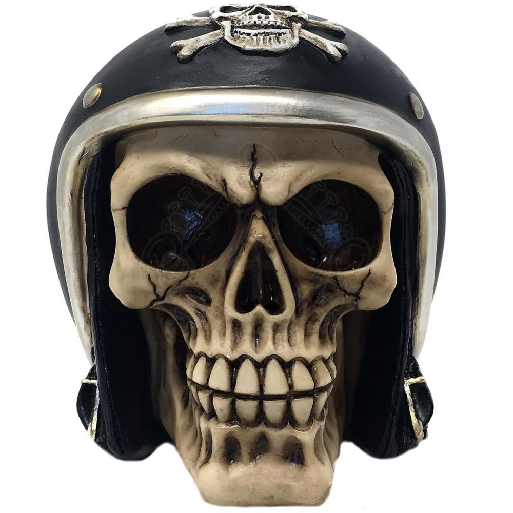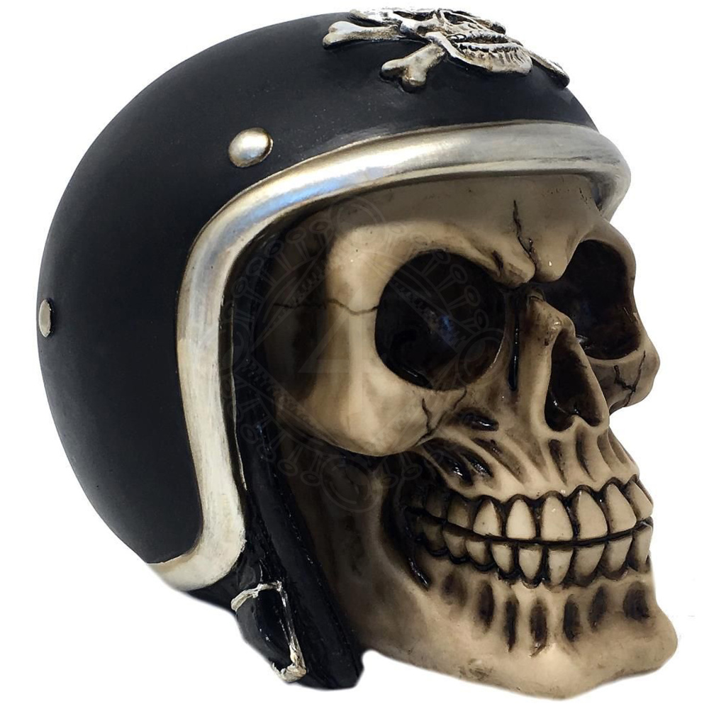 Lebka s motorkářskou helmou, 13cm plastika