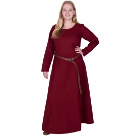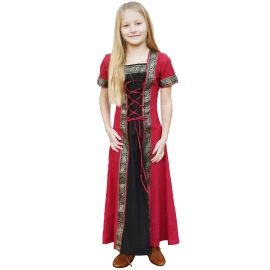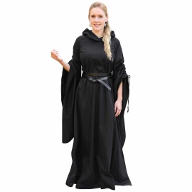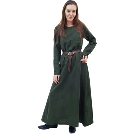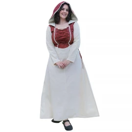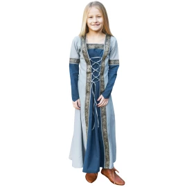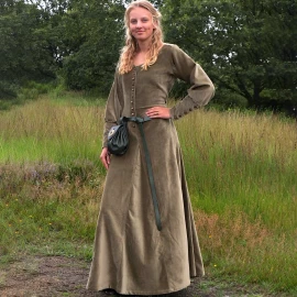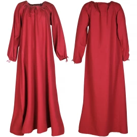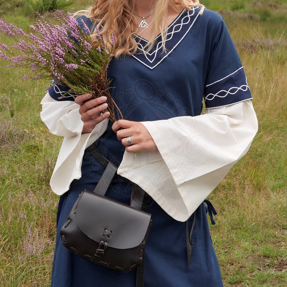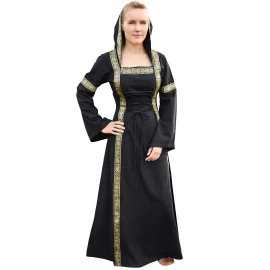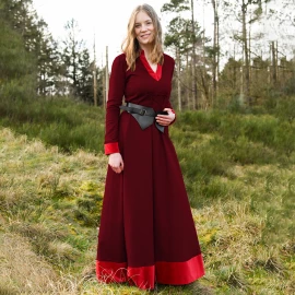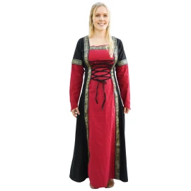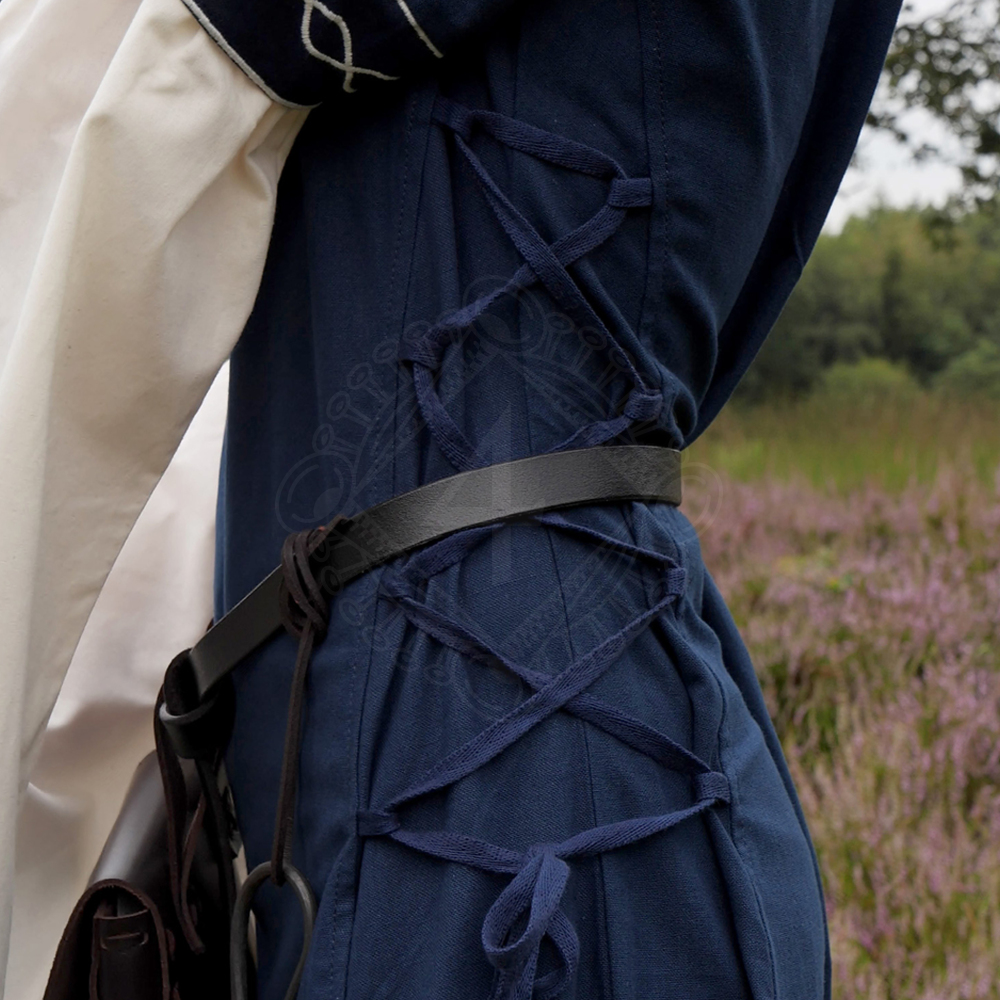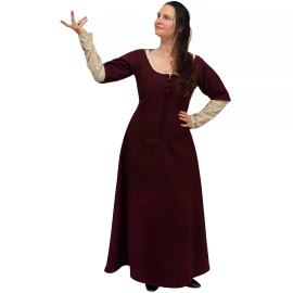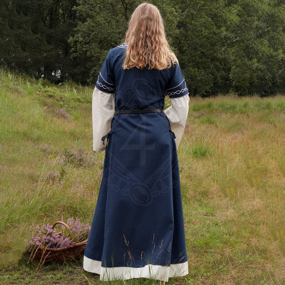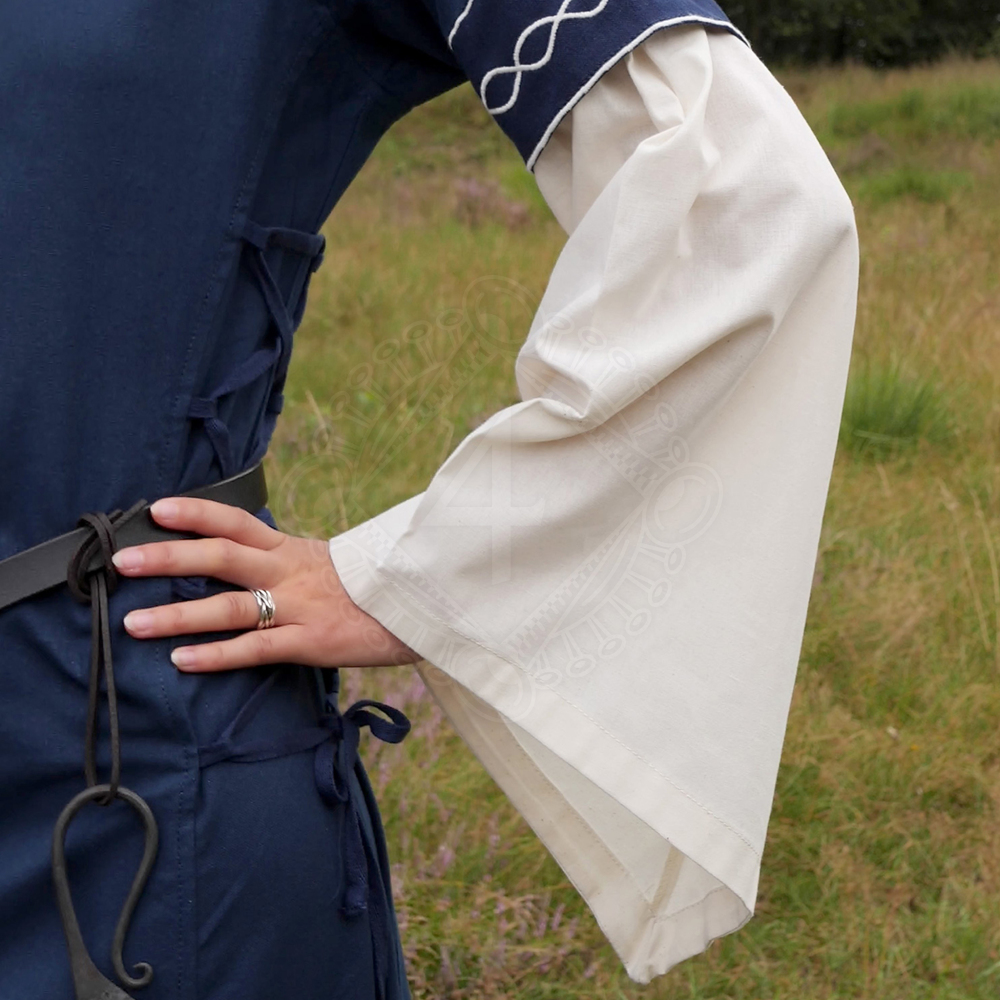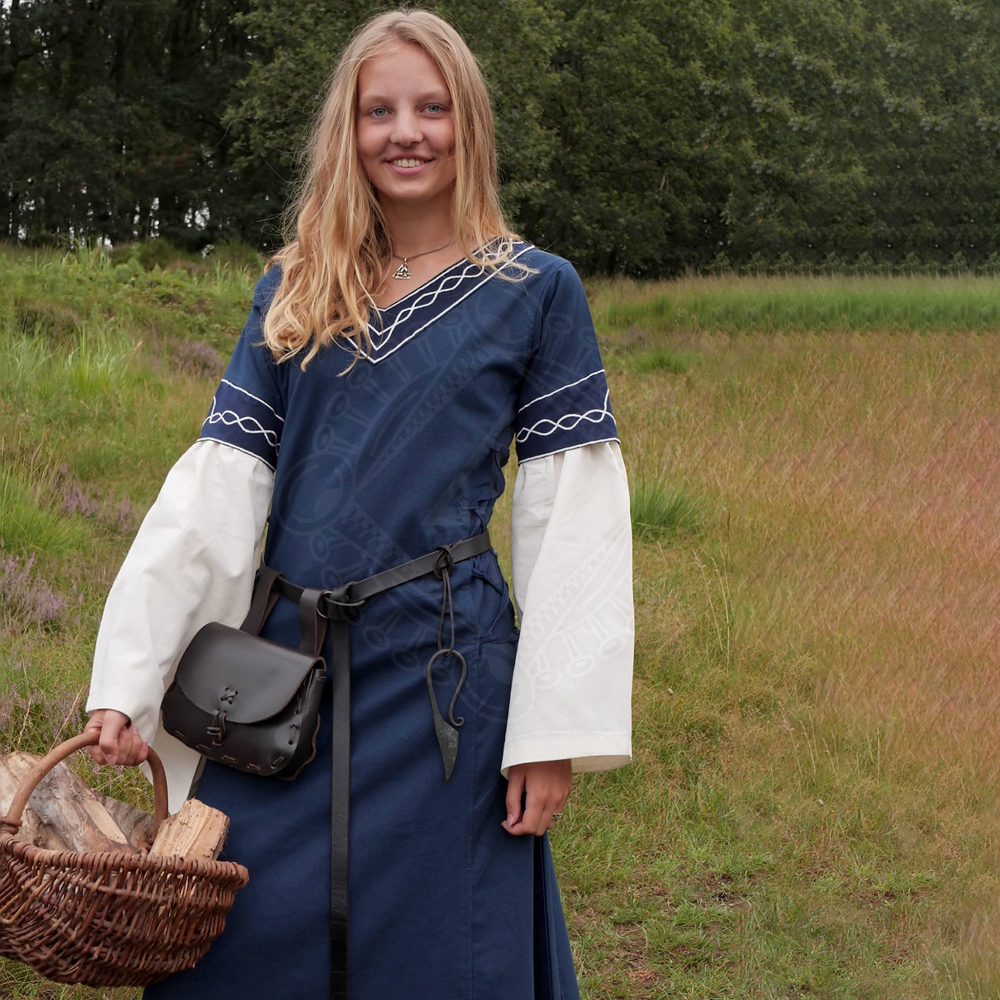 Tyto dlouhé středověké šaty z pevné bavlněné látky mají volný střih a díky šněrování na bocích je lze přizpůsobit taru figury. Rukávy a spodní lem jsou v kontrastních barvách, což vytváří dojem jako by měl člověk oblečenou i spodničku. Výstřih a lemy rukávů jsou zdobeny výšivkou. Více informací k produktu ...