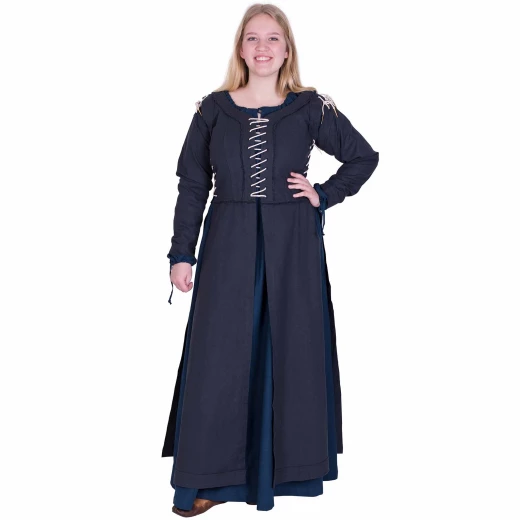 Středověké šaty Marit šněrované tkanicemi, tmavě modré