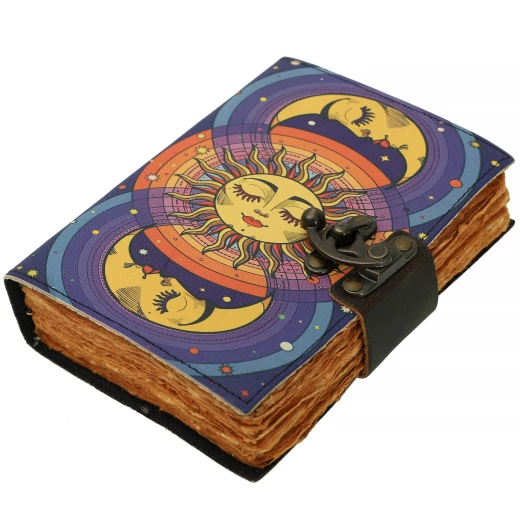 Nebeský zápisník střídání slunce a měsíce v kožené vazbě - Outlet