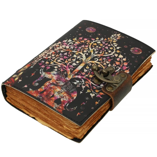 Kožený deník s UV potiskem „Slon a strom života“ - Outlet
