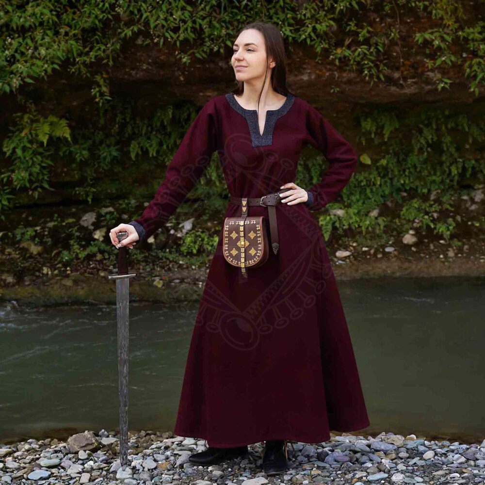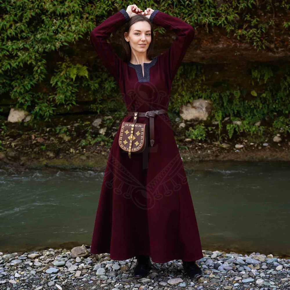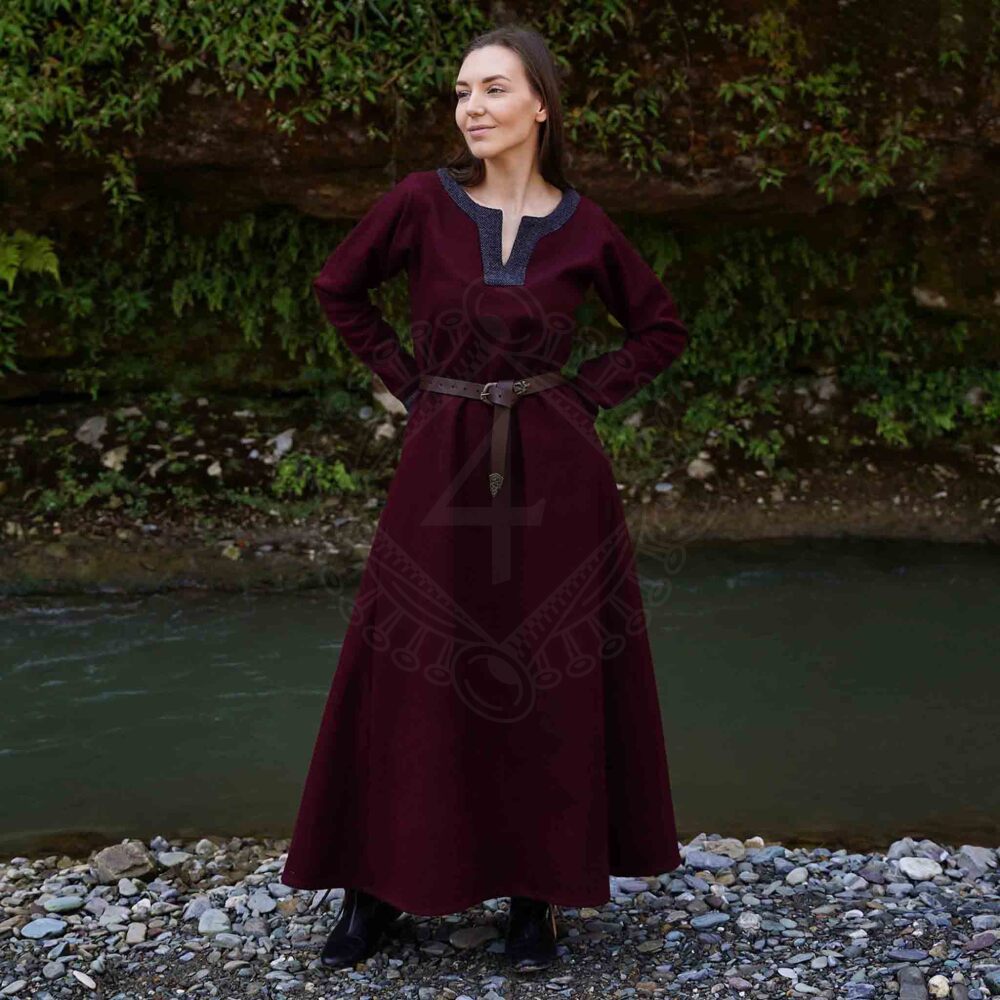 Vlněné šaty „Štítonoška Ingrid“ – Vínové | Viking styl