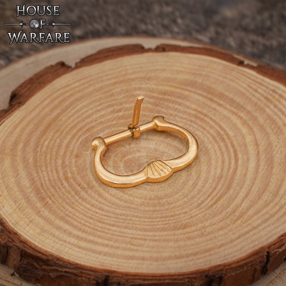 Hledáš tu správnou tečku pro svůj kostým? Často jsou to právě malé detaily, které odlišují špičkový reenactment od karnevalového převleku. Tato elegantní mosazná přezka lyrovitého tvaru není jen funkčním prvkem, ale i šperkem tvého oděvu. Její vnější stranu zdobí jemný, plastický motiv připomínající vějíř nebo mušli, což ji vizuálně povyšuje nad obyčejné užitkové kování. Je ideální volbou pro období vrcholného a pozdního středověku (cca 13. až 15. století). Více informací k produktu ...