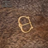 Přezka je vyrobena z kvalitní mosazi, která má přirozeně zlatavou barvu a evokuje luxus, přestože je cenově dostupná. Trn je pevný a spolehlivě drží v kůži. Tvar přezky je mírně prohnutý, aby lépe kopíroval tvar těla nebo obuvi.