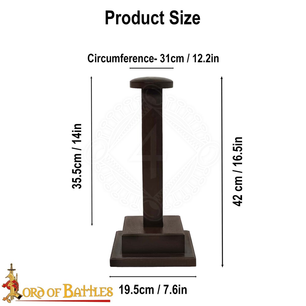 Robustní dřevěný stojan na přilbu 42cm pro přilby s kroužkovým límcem nebo bez něj