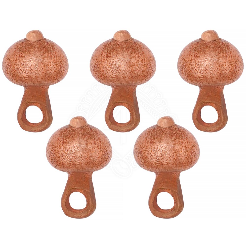 Každý knoflík z této sady je vyroben tradiční metodou lití do ztraceného vosku. Tato technika zaručuje, že knoflík není jen vylisovaným kusem plechu, ale plným kusem bronzu s jedinečnou, mírně hrubší povrchovou strukturou, která působí velmi historicky. Tvar připomínající hříbek nebo žalud je zakončen masivním očkem (stopkou).