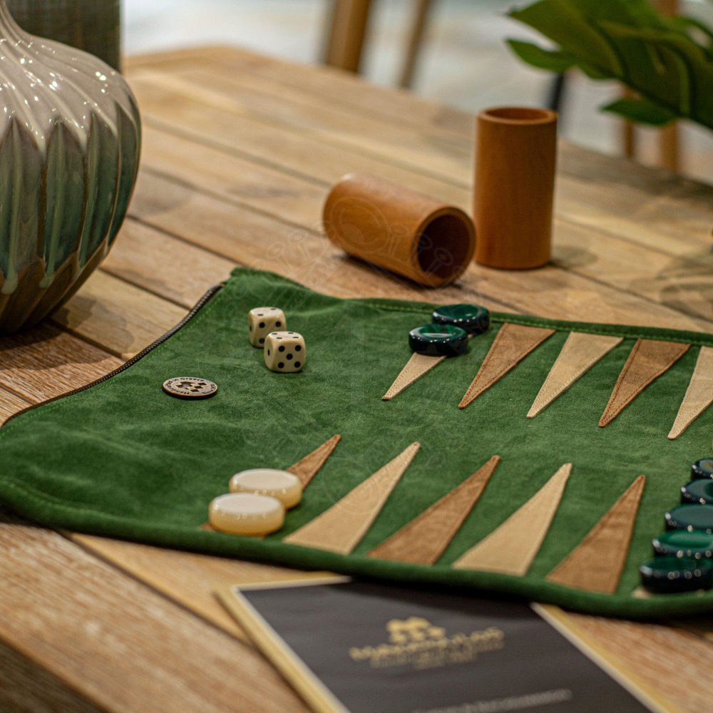 Vyzkoušejte luxusní řemeslné zpracování této vysoce kvalitní ručně vyráběné sady vrhcábů z pravé semišové kůže v barvě lesní zelená. Tato nádherná sada kombinuje eleganci semiše s pohodlím rolovacího provedení a vytváří tak skutečně jedinečný a sofistikovaný kousek do tvé herní sbírky. Více informací k produktu ...