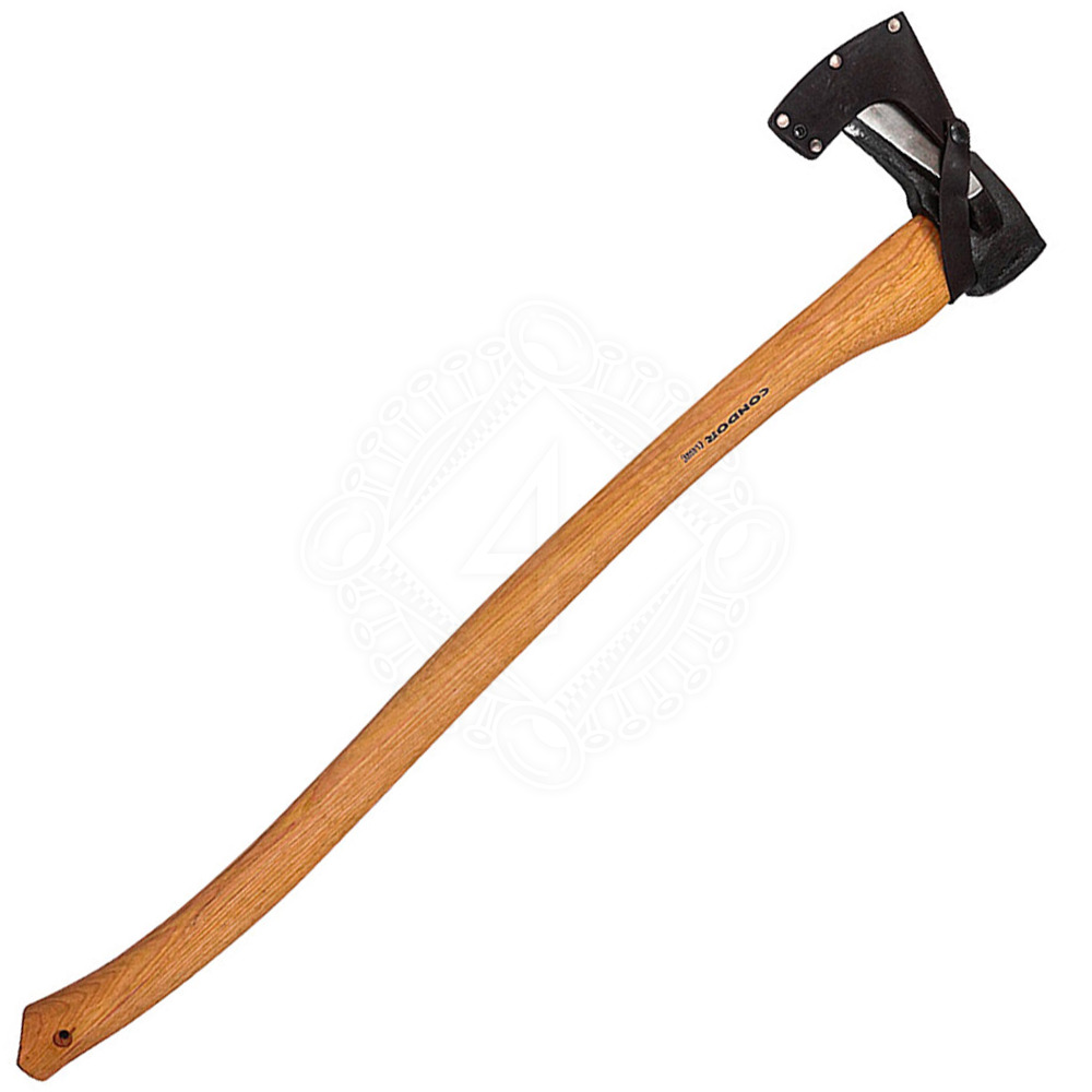 Má asi 15 cm dlouhou hlavu sekery z uhlíkové oceli 1060 a asi 67 cm dlouhou násadu ze dřeva amerického ořechovce.