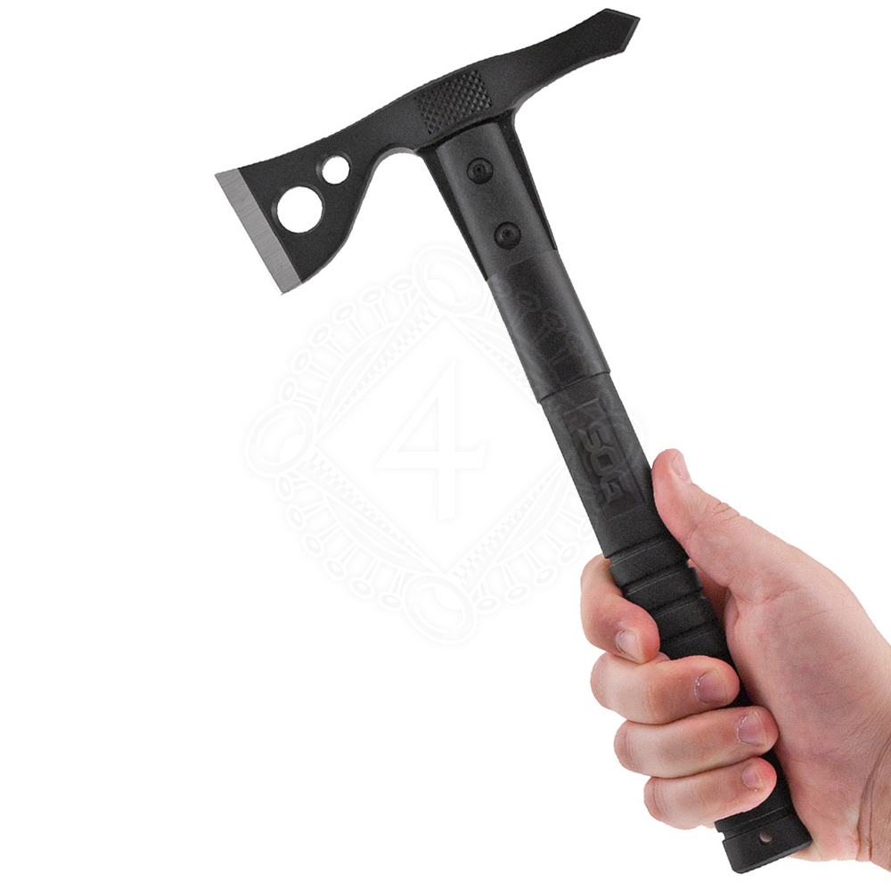 Hlava sekery je vyrobena z nerezové oceli 420 s černou povrchovou úpravou, která je k rukojeti z balistického polymeru připevněna pomocí odolných šroubů a ocelového kování, které zajišťuje maximální stabilitu.