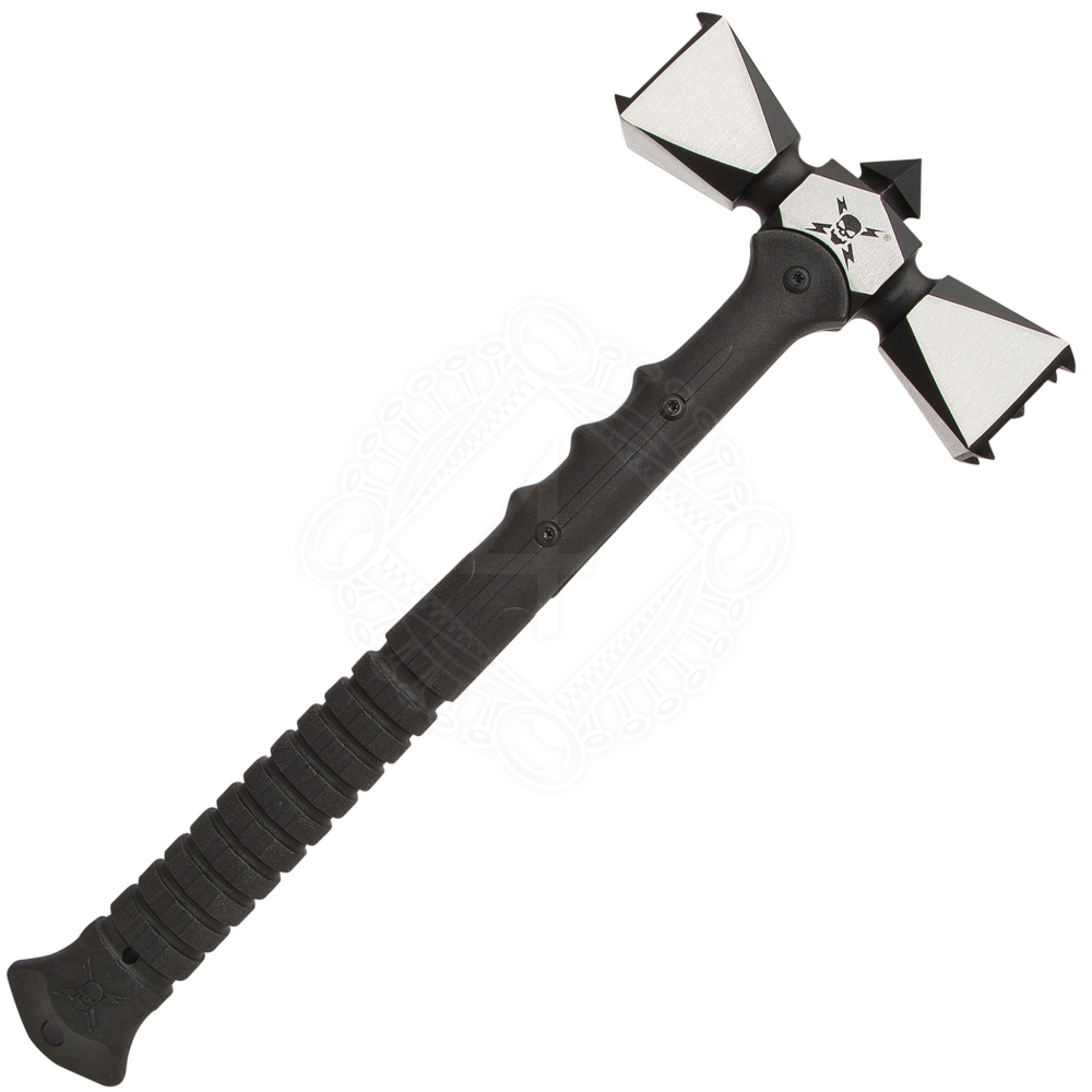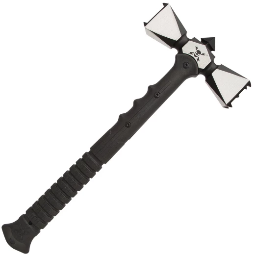 Dvouhlavé válečné kladivo M48 má cca 17,5 cm dlouhou dvojitou hlavu z nerezové, saténově matné oceli 2Cr13. Hlava kladiva má v prodloužení topůrka hrot a pět hrotů na každé úderné ploše. Rukojeť je vyrobena z prakticky nezničitelného nylonu vyztuženého vstřikováním skelných vláken a je opatřena otvorem pro šňůrku. Do rukojeti jsou vyryté drážky, takže lze poměrně snadno omotat paracord. Více informací k produktu ...