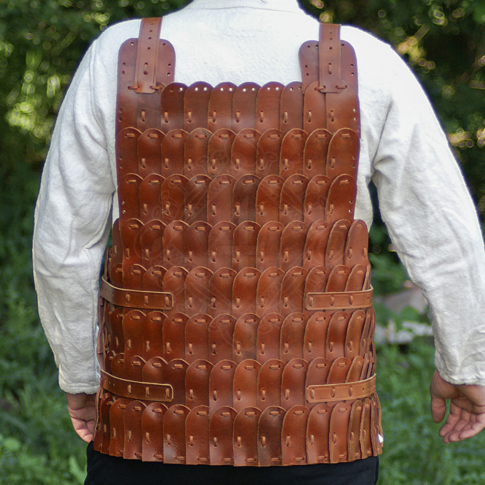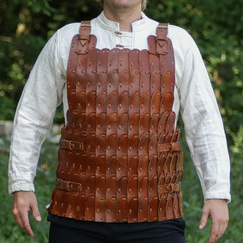 Autentická rekonstrukce raně středověké kožené lamelové zbroje, jakou nosily germánské kmeny, Slované, Keltové a Vikingové. Více informací k produktu ...