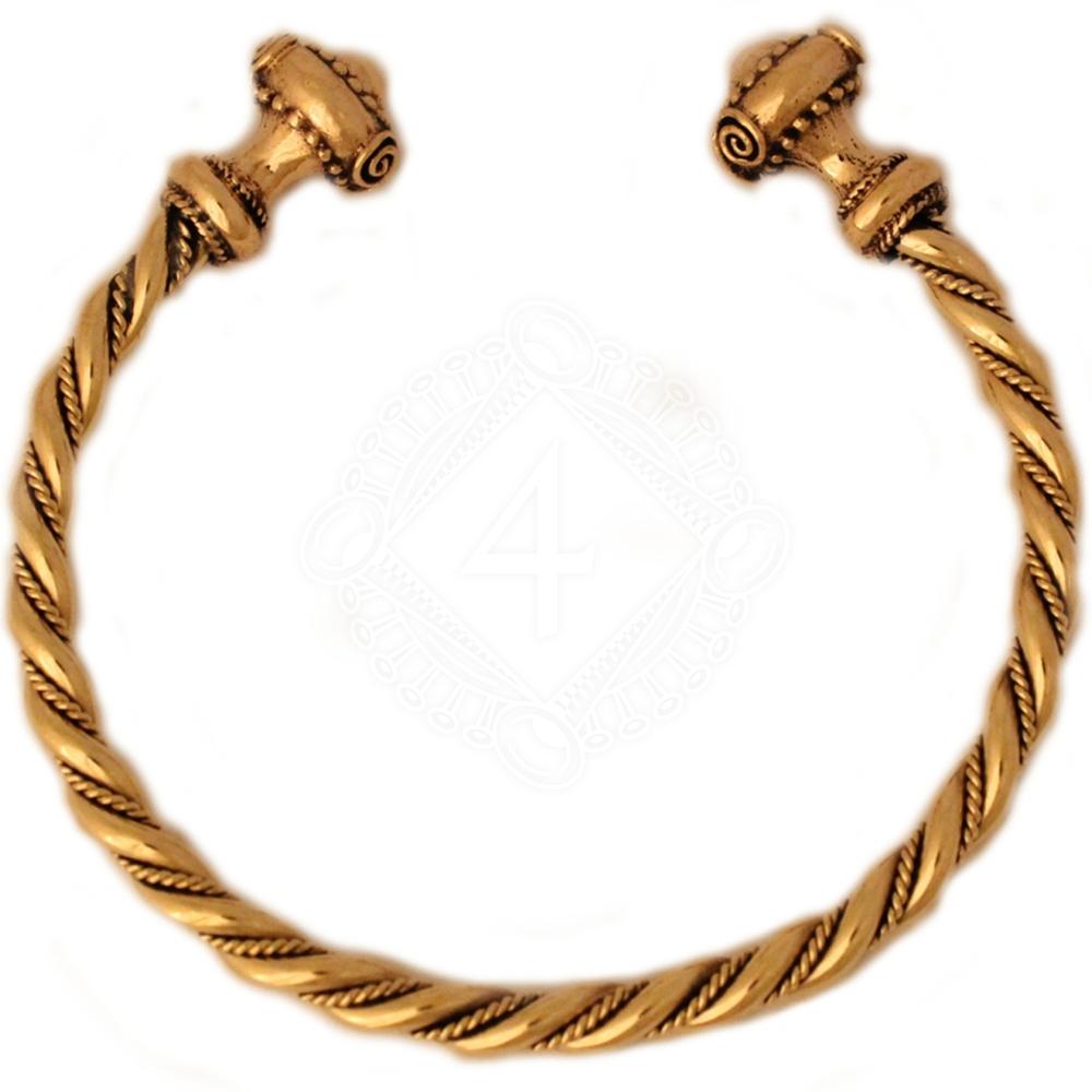 Náramky byly velmi oblíbené u Keltů, germánských kmenů a Vikingů. Tento náramek ve stylu doby laténské je vymodelován podle vzoru torques (spirálovitý kroužek). Ražené konce jsou zdobeny spirálami. Více informací k produktu ...