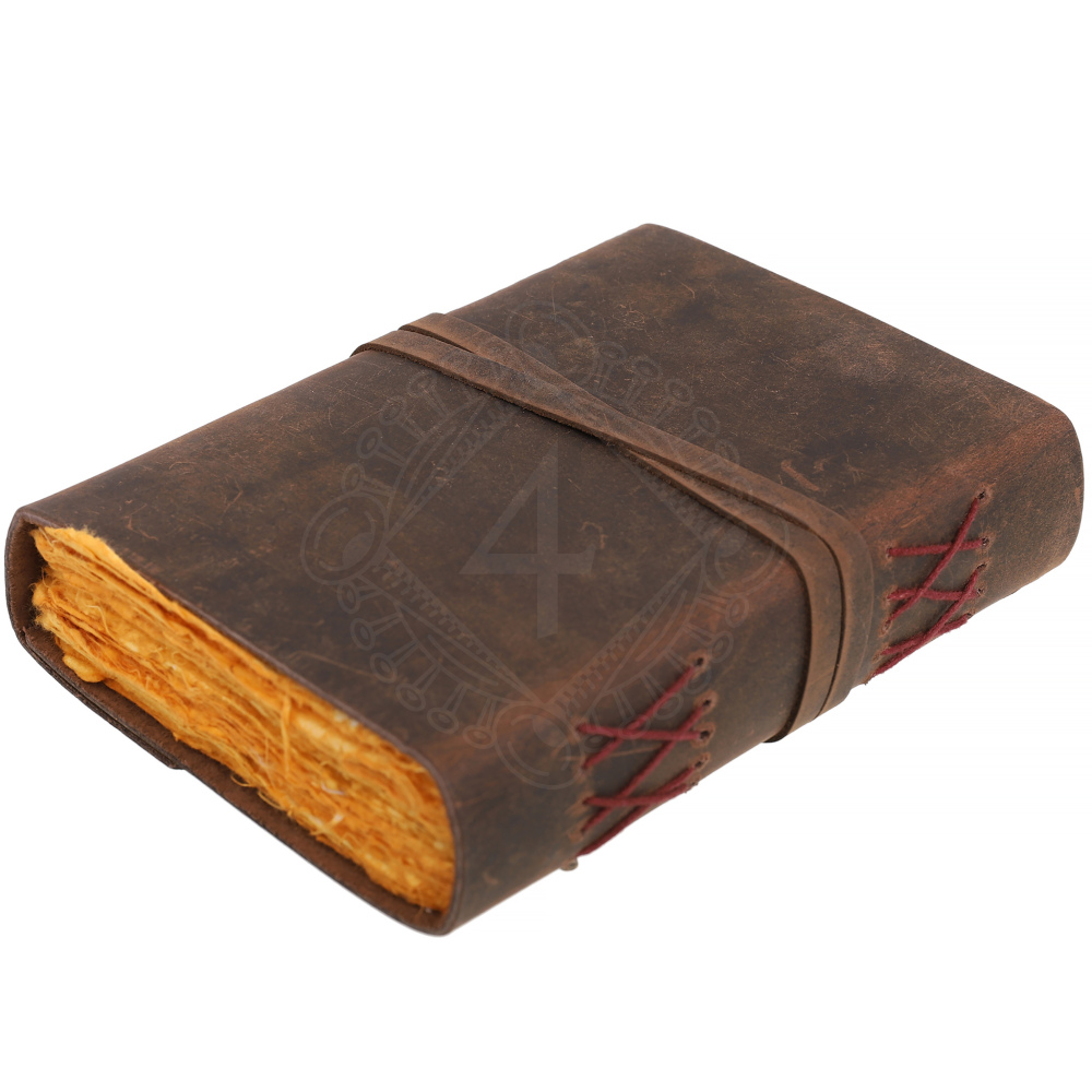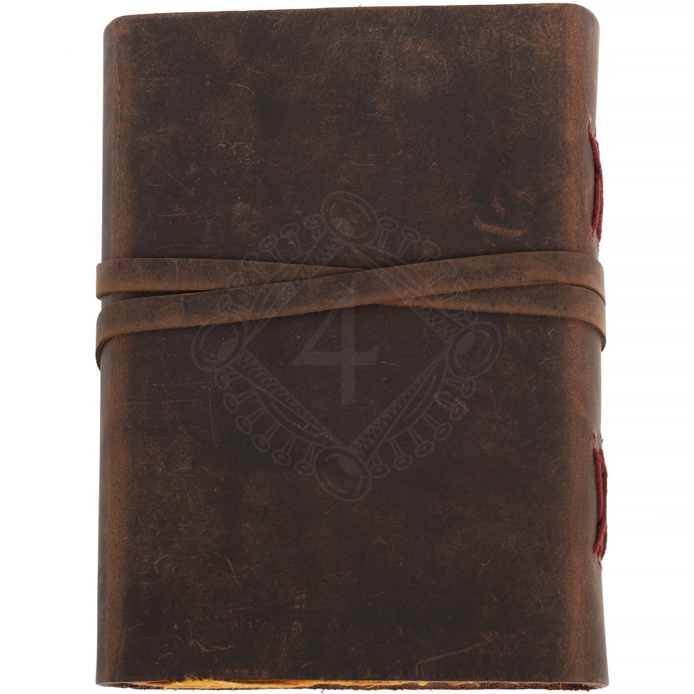 • Pravá kůže s patinou času: Desky z tmavě hnědé, patinované kůže působí staře a opotřebovaně. Každý škrábanec a záhyb dodává zápisníku jedinečný charakter a vintage vzhled.