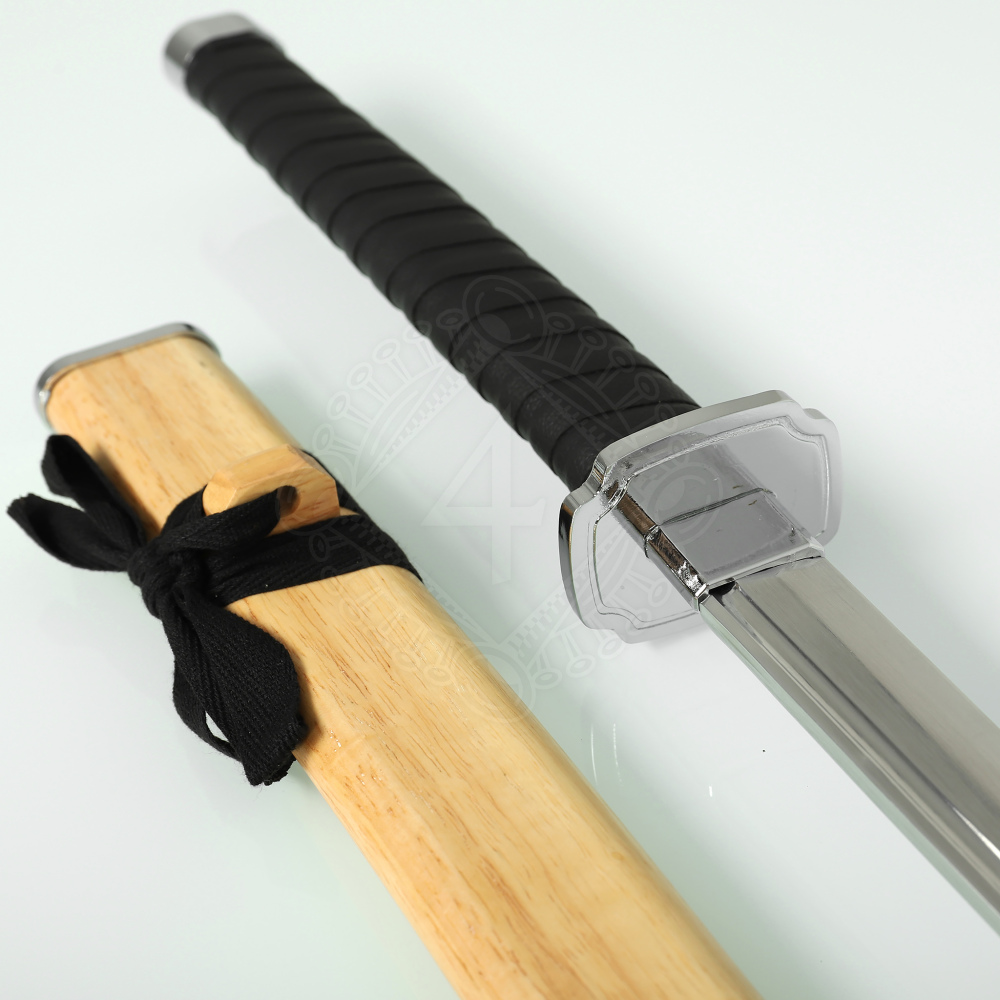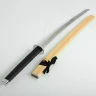 - Pouzdro (Saya): Katanu dodáváme včetně dřevěného pouzdra (saya) ve světlé přírodní barvě dřeva. Pouzdro chrání čepel a je opatřeno černou stuhou (sageo), která ladí s rukojetí.