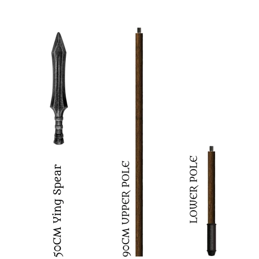 - Obsahuje: 1x 50cm hlavice kopí Ying, 1x 90cm horní tyč, 1x 70cm spodní tyč.